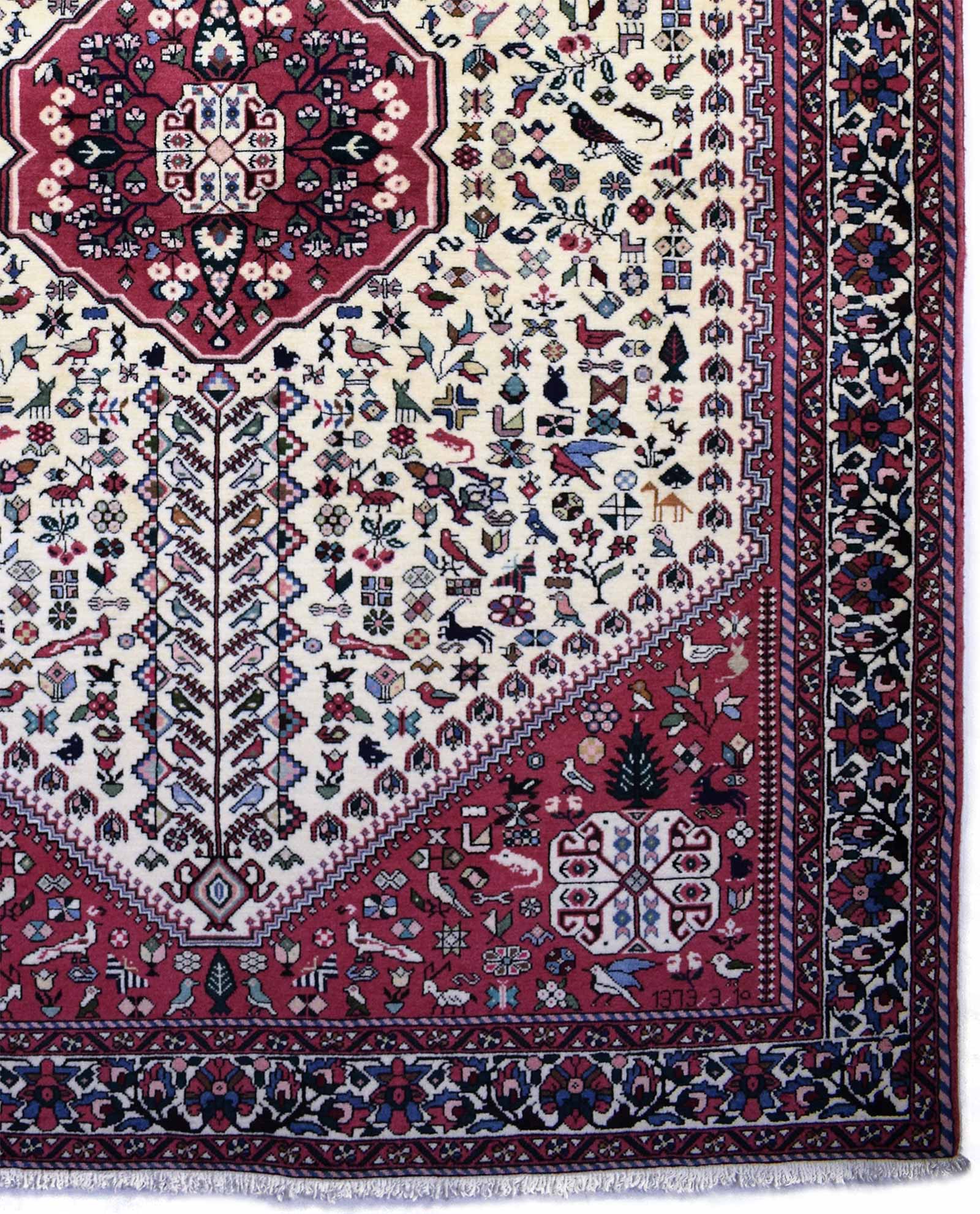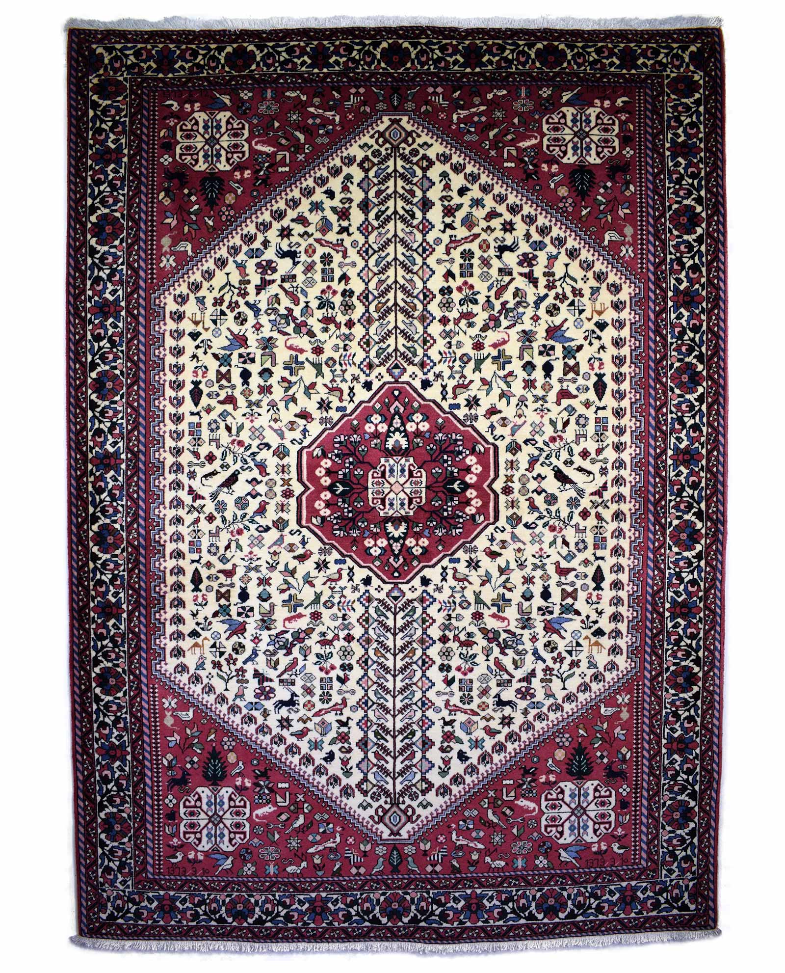 Deze Abadeh is geknoopt in Iran. De afmetingen bedragen 208 cm op 148 cm. Dit is een nomadisch tapijt met warme rode kleuren. Dat dit tapijt door nomaden gemaakt is kunt u duidelijk zien aan de motieven en kleine tekeningen, er komen vaak dieren en herders voor. De wol is plantaardig gekleurd en met de hand gesponnen van hun eigen schapen. Het motief is geïnspireerd door de natuurlijke omgevingen waar het tapijt gemaakt is.