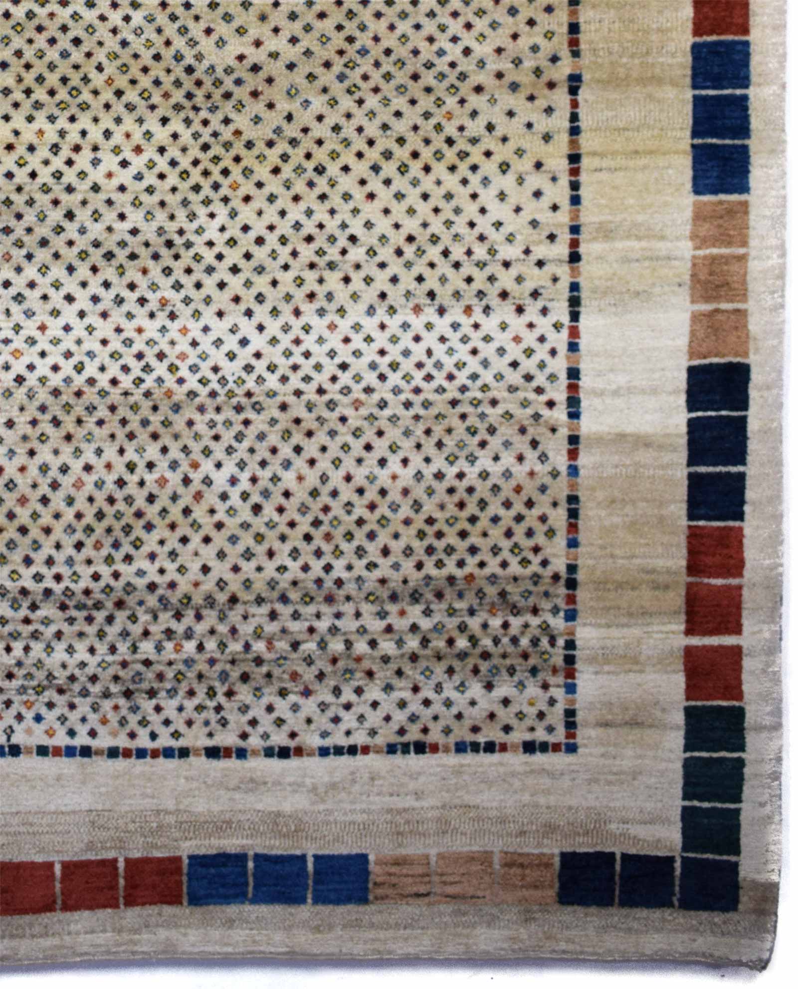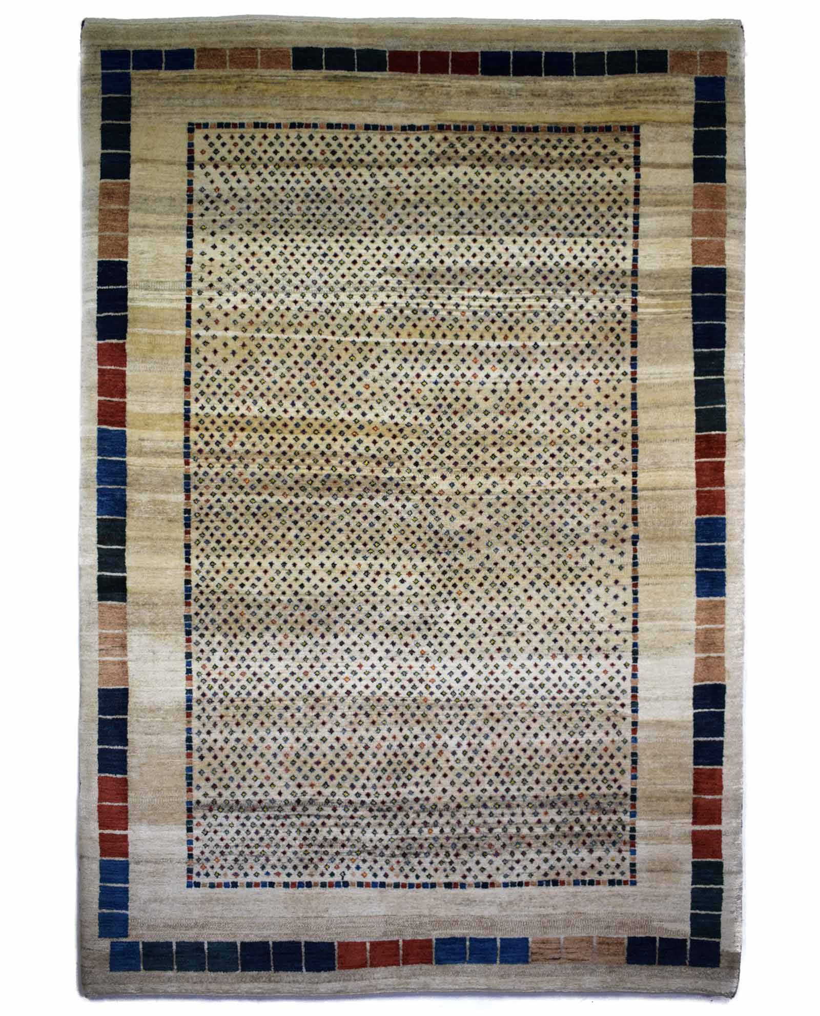 Dit nomadisch tapijt is geknoopt in Iran, de afmetingen bedragen 175 cm op 122 cm. Het tapijt bestaat volledig uit wol die op plantaardige basis gekleurd is. Dit resulteert in mooie kleurschakeringen.