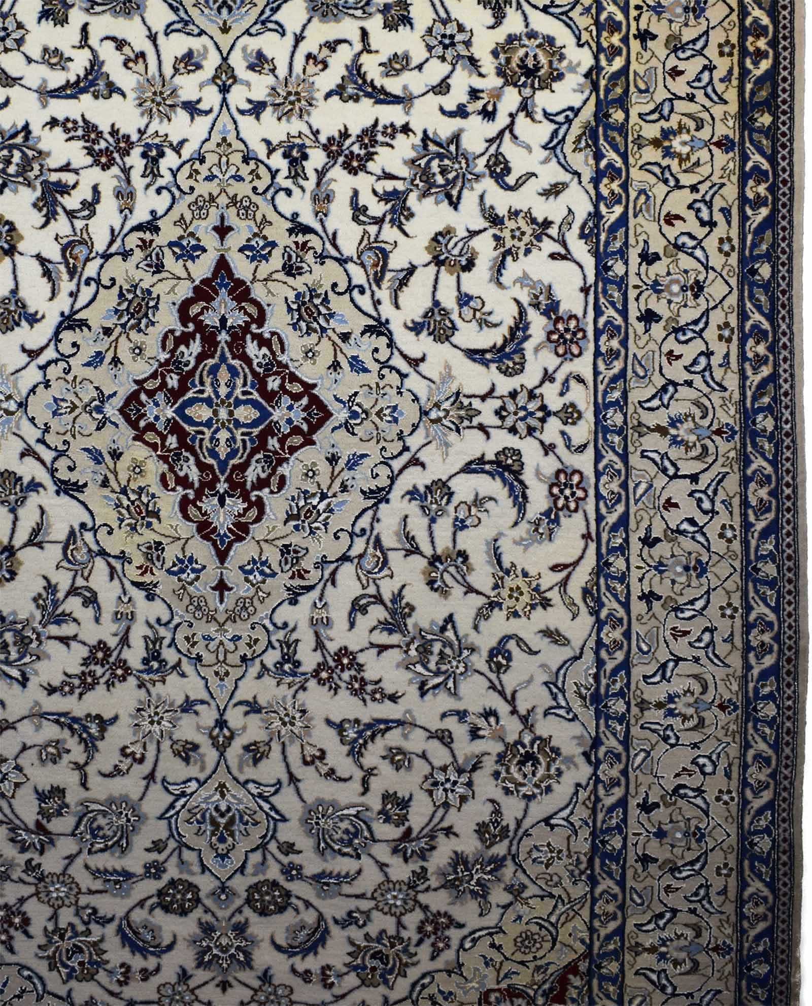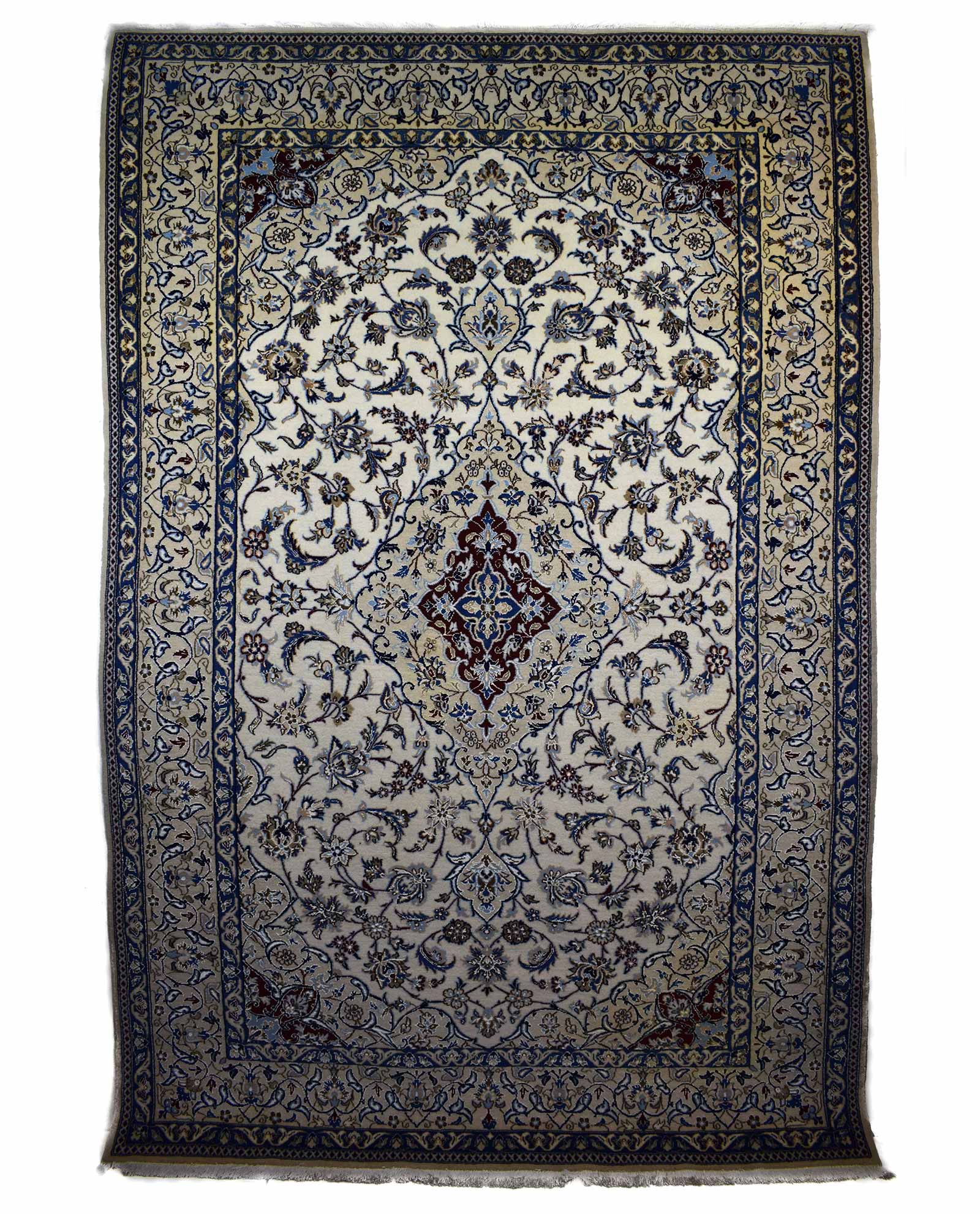 Deze Nain 9La gemaakt in de stad Nain in het noorden van Iran. De afmetingen bedragen 261 cm op 167 cm. Wat hier opvalt is het mooie diepe indigo wat typerend is voor Nain. 9La is binnen de tapijtknoopkunst een kwaliteitsmerk dat weergeeft hoe fijn een tapijt is geknoopt, in het geval van 9La wilt dit zeggen dat het tapijt fijn is met 500 000 knopen per m².