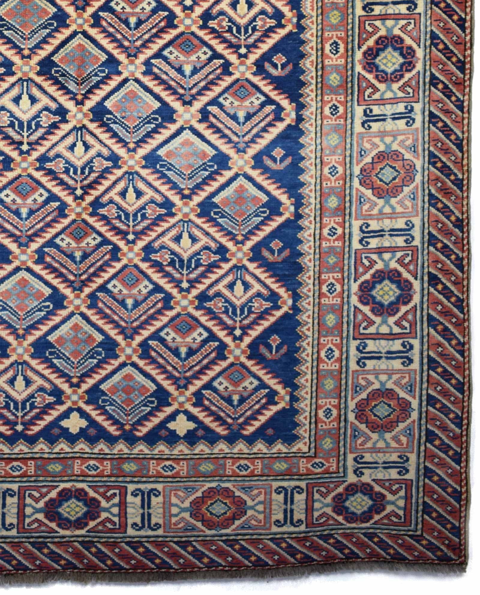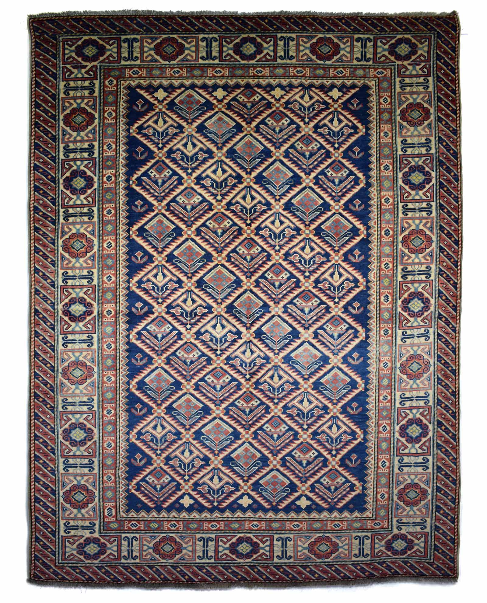 Deze Shirwan is gemaakt door nomadische mensen uit de streek van de Kaukasus. De afmetingen bedragen 176 cm op 130 cm. Dit tapijt is geïnspireerd door de natuur en leefomgeving van de nomaden.