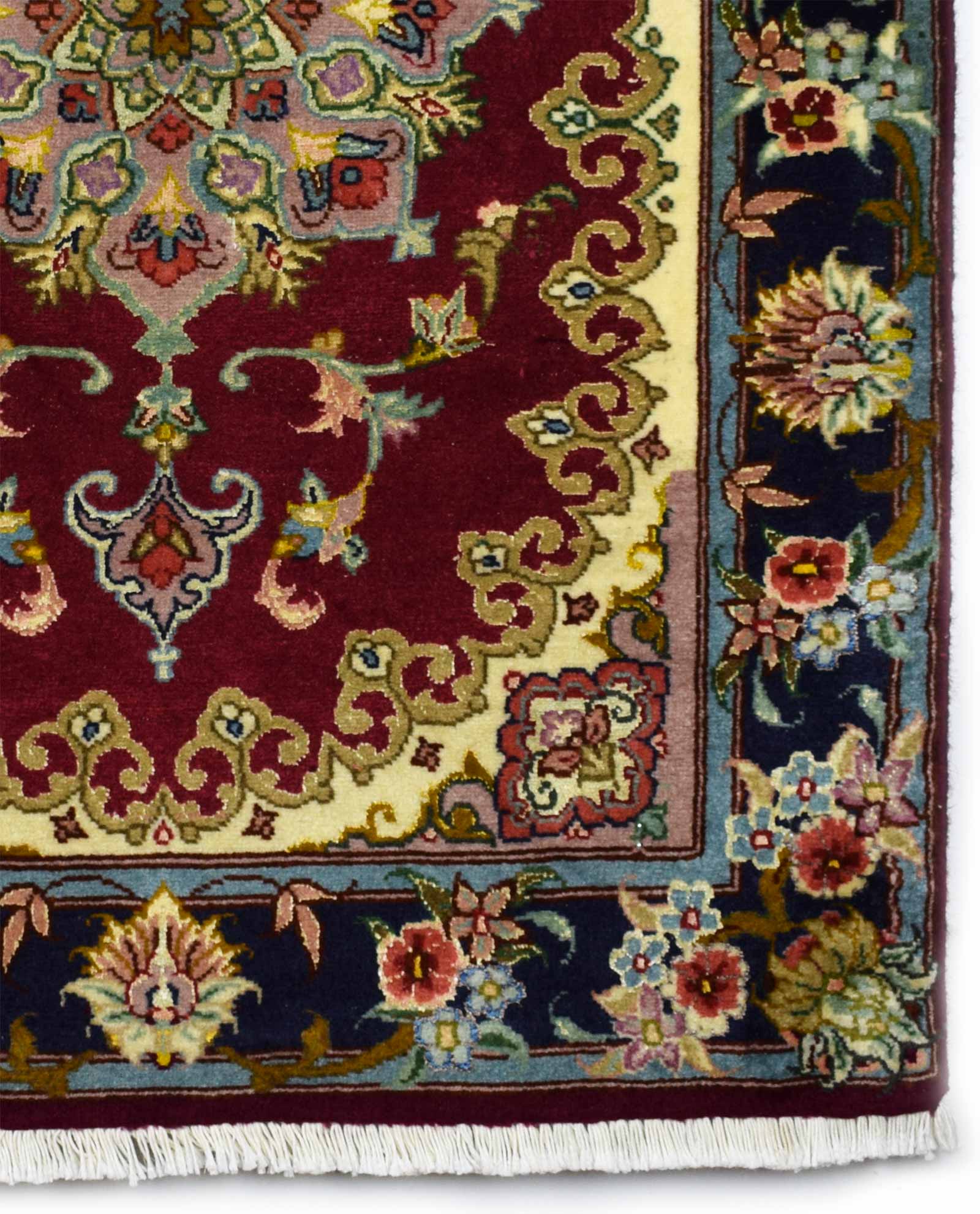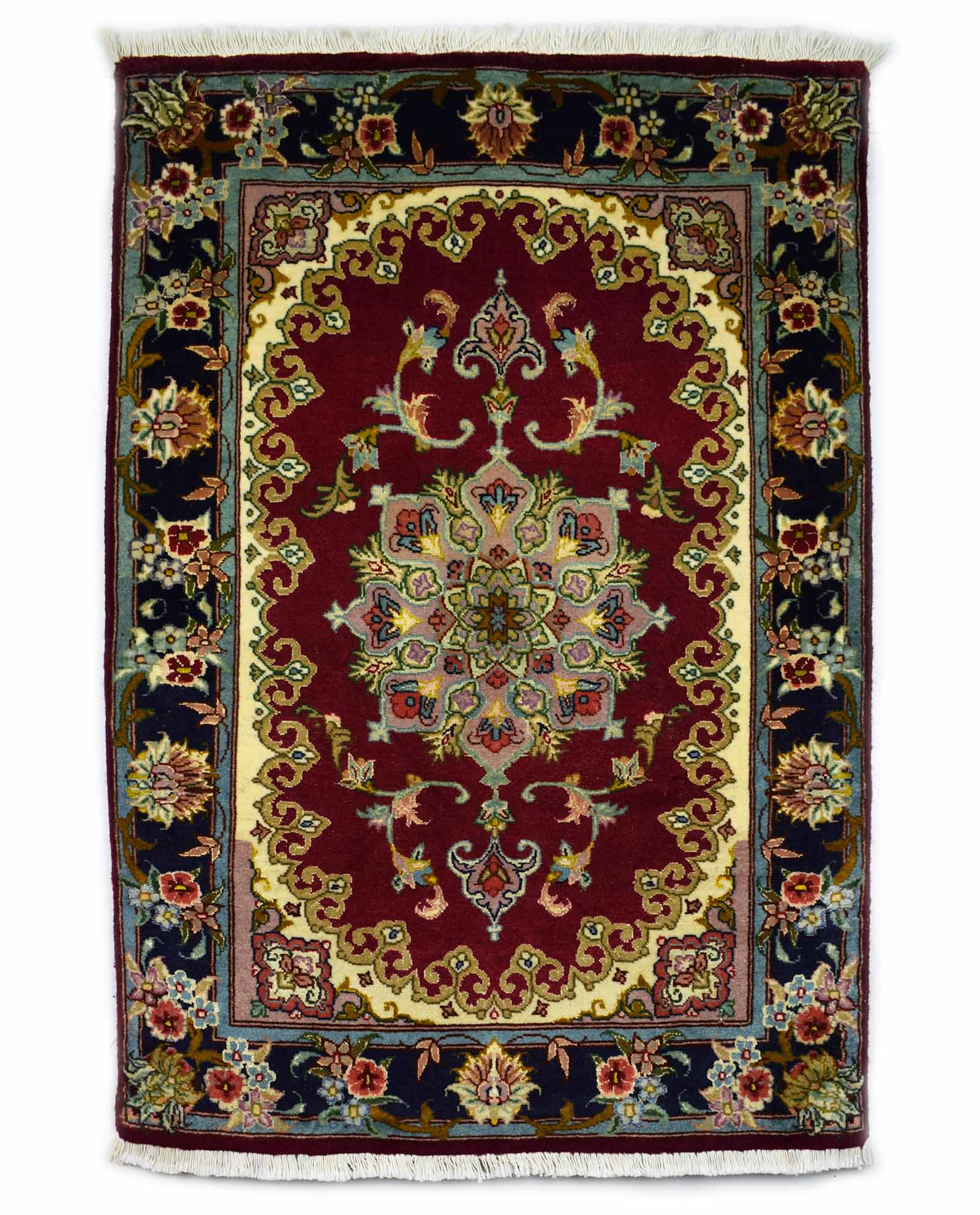 Dit tapijt is een Tabriz, geknoopt in noord-Iran. De afmetingen bedragen 88 cm op 60 cm. De knoopdichtheid bedraagt rond de 500 000 knopen per m². De wol gebruikt in dit tapijt natuurlijk en op plantaardige wijze gekleurd. Dit geeft de mooie kleurschakeringen wat een echte authentieke uitstraalt.