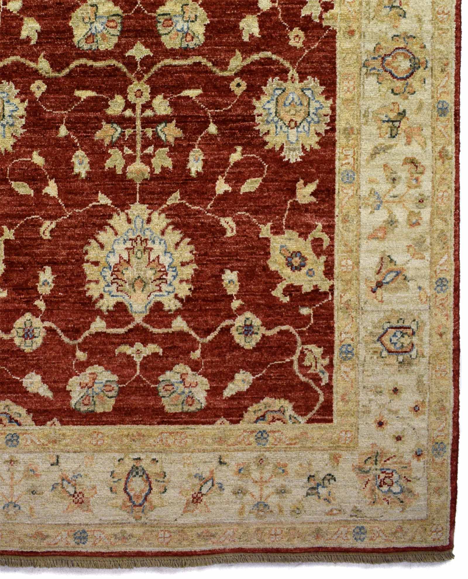 Deze Ziegler van 116 cm op 177 cm is geknoopt in Pakistan. Het tapijt is oorspronkelijk afkomstig van Iran maar vanwege de populariteit knoopt men ze nu ook in aangrenzende landen. De wol is natuurlijk en met de hand gesponnen waarna de wol een natuurlijke kleuring doorgaat. Wat typerend is voor Ziegler is dat deze tapijten heel licht zijn qua kleur.
