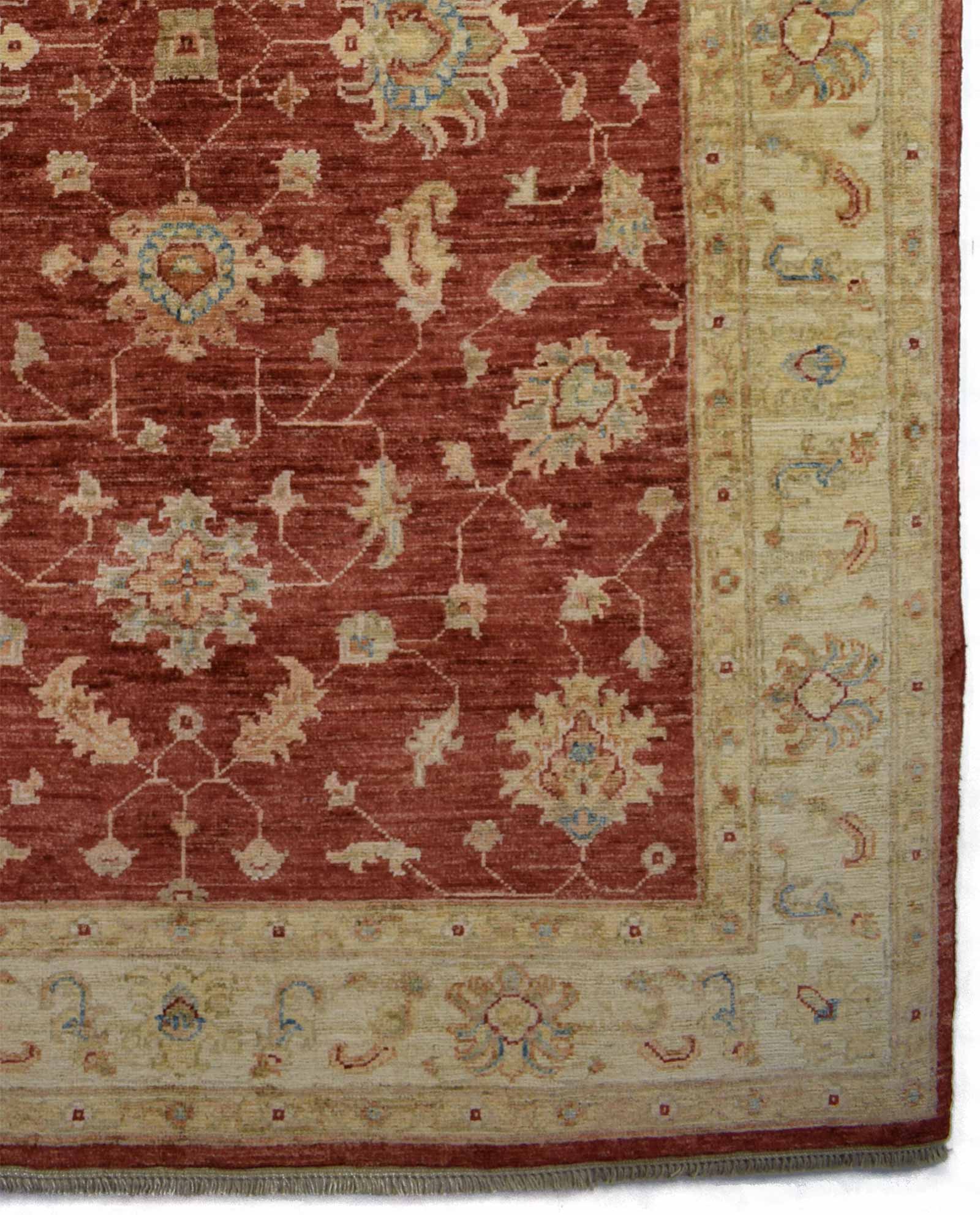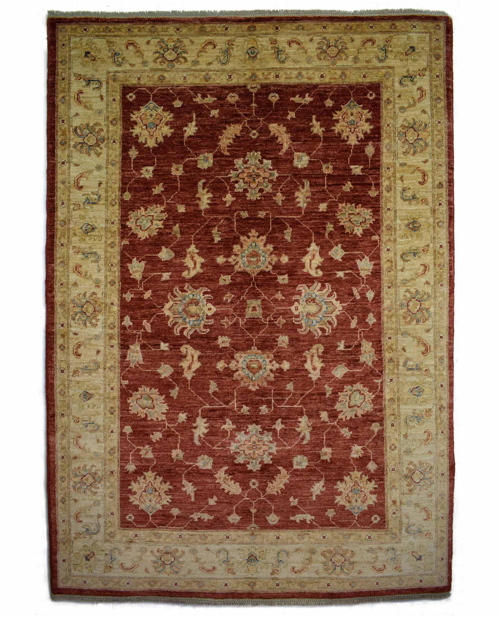Deze Ziegler van 177 cm op 123 cm is geknoopt in Pakistan. Oorspronkelijk is het tapijt afkomstig van Iran maar naarmate de populariteit steeg is men het tapijt in Pakistan ook beginnen maken. De wol is natuurlijk en met de hand gesponnen waarna de wol een natuurlijke kleuring doorgaat. Wat typerend is voor Ziegler is dat deze tapijten heel licht zijn qua kleur.